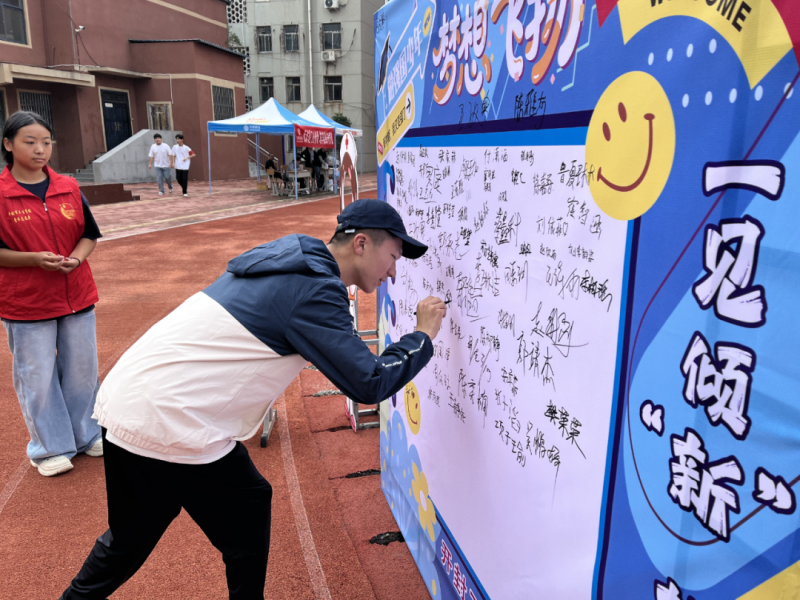 校园里,“逐梦卫校·医路启航”、“一见倾‘新’,梦想起航”的签名墙格外亮眼,特色的医药元素不断吸引新生驻足,签名墙上的满满字迹,不仅是对珍贵瞬间的铭记,更是对未来梦想的庄严承诺。